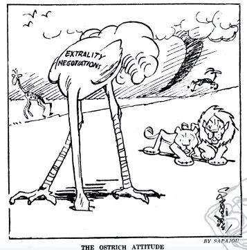 (搜集毕业论文资料时,从1931年11月17日的The North-China Herald & Supreme Court & Consular Gazette上看到的的漫画)