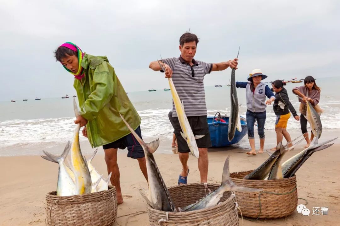 船一靠岸,搬运渔婆冲上去搬第一筐鱼,鱼先搬上再谈价格。搬运是门竞争很剧烈的生意,渔婆们一般六七个人组成一个小团队。