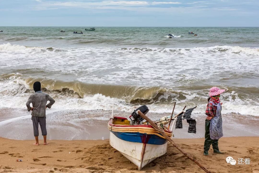 海湾即是家。休息的间隙,三两渔民闲话家常、生计。