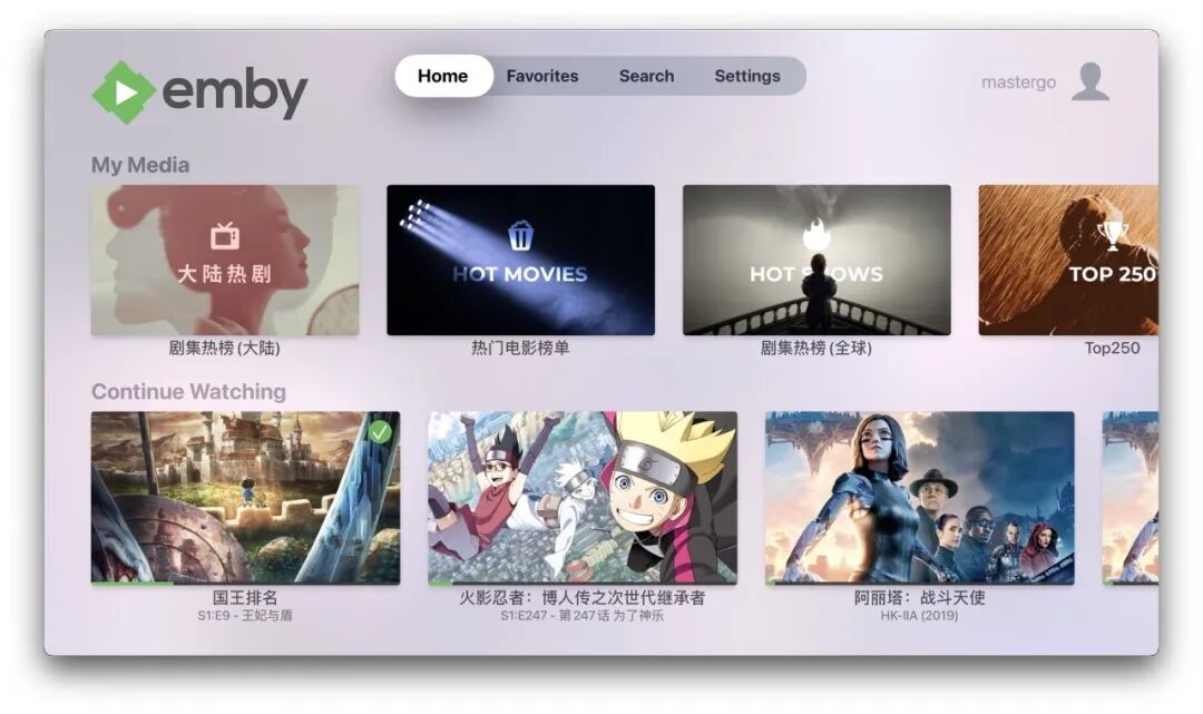 电视端:Infuse 直连 Emby ,可以完整显示媒体元数据;Emby Apple TV 版直连 Emby ,各端同步播放进度。