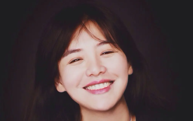 她脸圆圆的,笑起来没有攻击性,可爱得像海绵宝宝。
