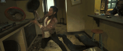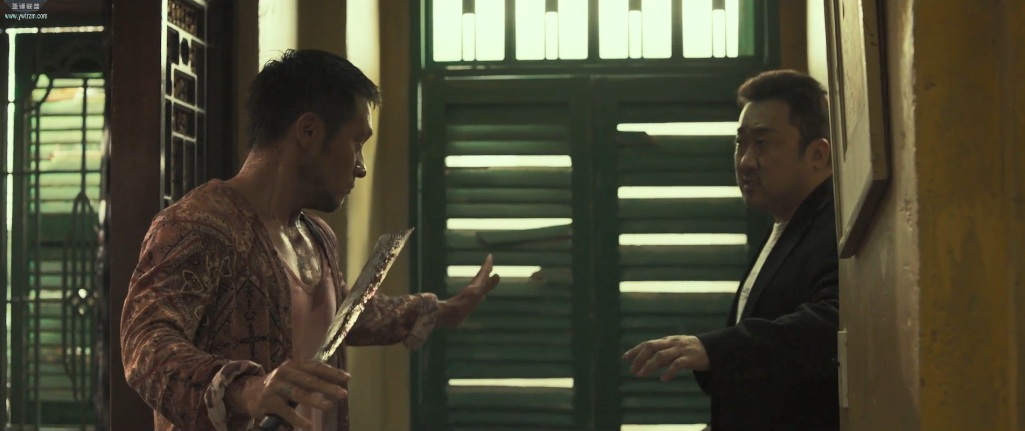 《犯罪都市》系列继承了韩式偏好,全程都是肉搏近身战,用的是砍刀、匕首、斧头等冷兵器。