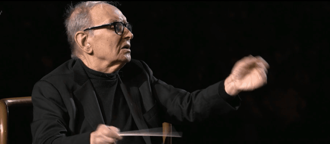 其次,它很动人。和人们印象中的大佬风范不一样,莫里康内其实并没有那么“自信”,甚至于,你会觉得他时常委屈。
