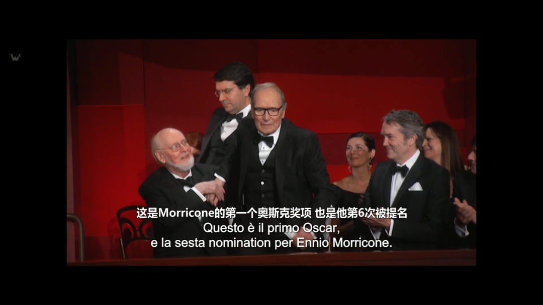 终于,2006年,莫里康内拿到了自己的第一座小金人。人们当时都以为在80岁的年纪,莫里康内要退休了,不过他并没有,他仍然继续创作。在经历了五次提名之后,终于在第六次,2015年他与昆汀合作的《八恶人》中摘得了奥斯卡最佳原创配乐奖。于是便有了开头昆汀将莫里康内比作莫扎特、贝多芬的名场面。不过对于莫里康内来说,也许等上个200年,也会觉得实至名归。