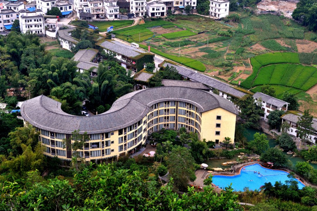 景区融观光旅游、度假酒店、壮乡风情、影视艺术、商务会议、户外运动、休闲养生于一体,人文与自然艺术天然融合,壮族特色的建筑点缀在清幽淡雅的山水之间,宛如天上神仙境地。