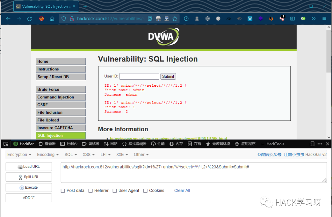 http://hackrock.com:812/vulnerabilities/sqli/?id=1%27+order by 2+%23&Submit=Submit#