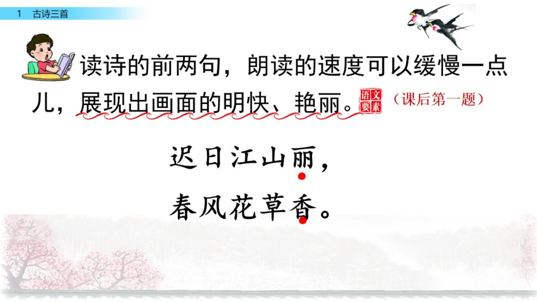 3.能借助注释和插图了解诗句的意思,想象画面,说出诗中描绘的景象。
