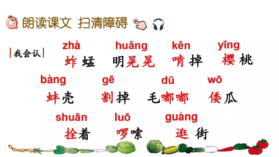 1.会认本课11个生字,会写14个生字,认识多音字“晃”,理解生字组成的词语。