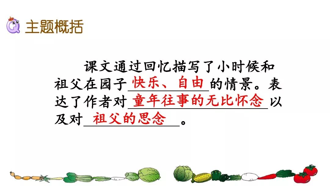3.抓住园中趣事感受“我”在园子里充满乐趣、自由自在的生活,体会祖父的爱。