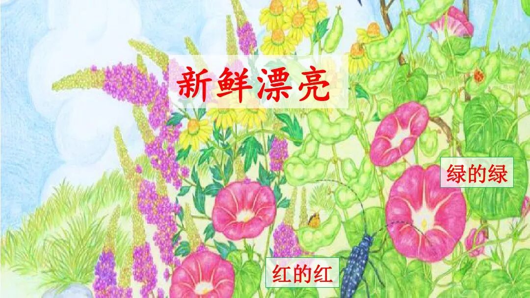2.花园里边明晃晃的,红的红,绿的绿,新鲜漂亮。“明晃晃”一词改为“五颜六色”好不好?