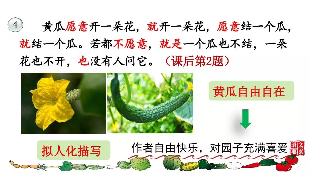 3.黄瓜愿意开一朵花,就开一朵花,愿意结一个瓜,就结一个瓜。