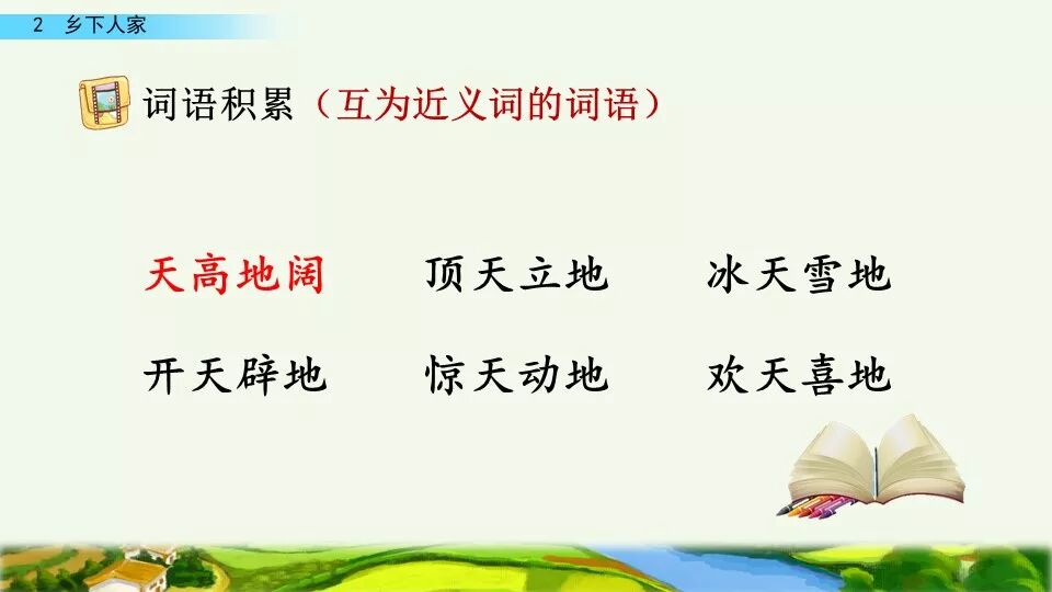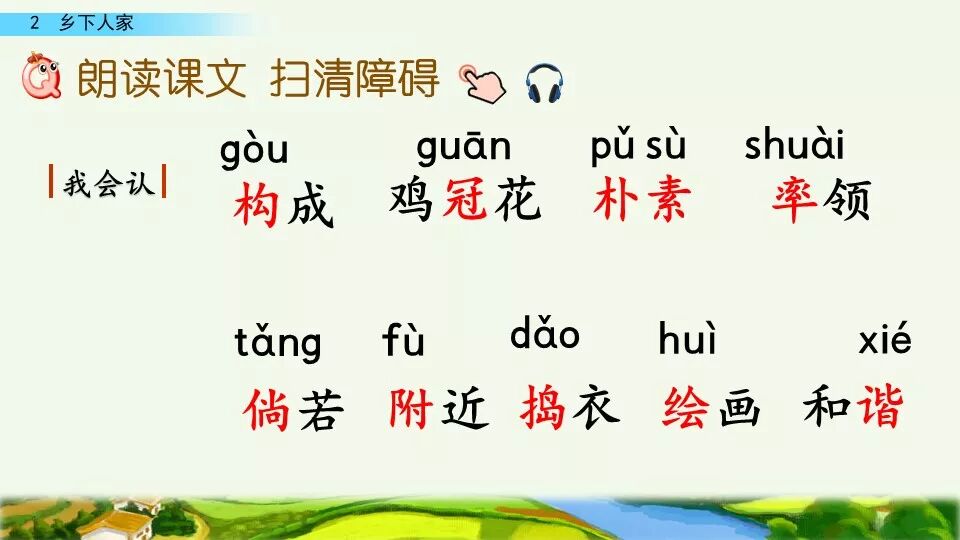 和谐:配合得适当。本课指乡下的风景与乡下人家形成了协调、统一的画面。