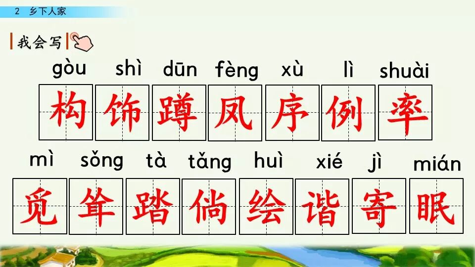 3.掌握课文的叙述顺序,学习作者通过描写和乡下人家最密切相关的景物来抒发情感的表达方法。