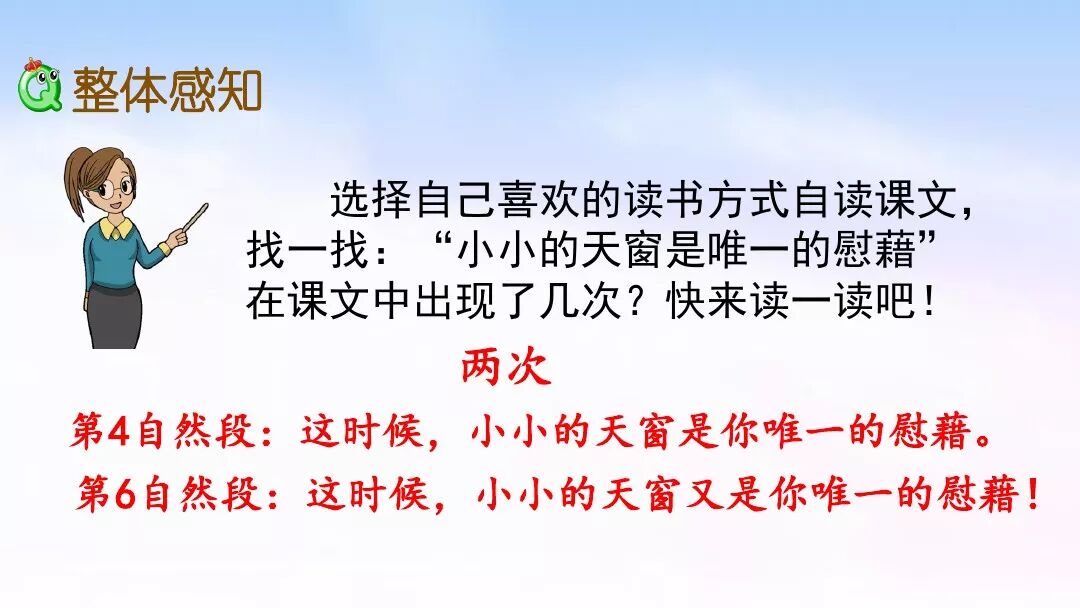 2.默读课文,理解天窗是孩子们“唯一的慰籍”的原因。