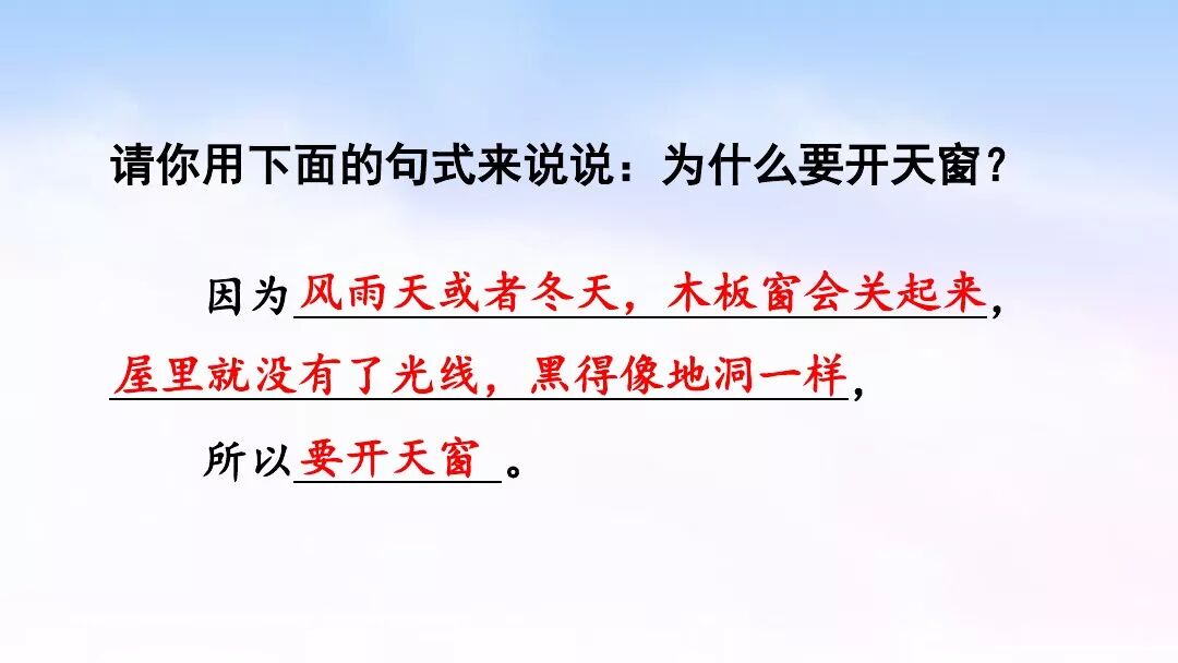因为风雨天或者冬天,木板窗会关起来,屋里就没有了光线,黑得像地洞一样,所以要开天窗。