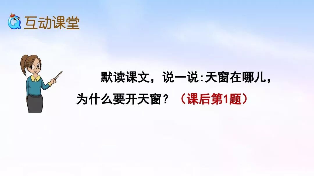 1.默读课文,说一说:天窗在哪儿,为什么要开天窗?