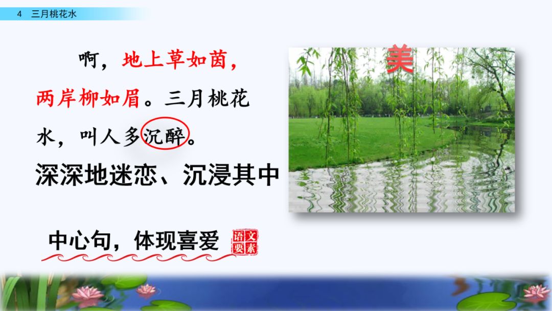 第二段(7):赞扬了三月桃花水叫人沉醉。