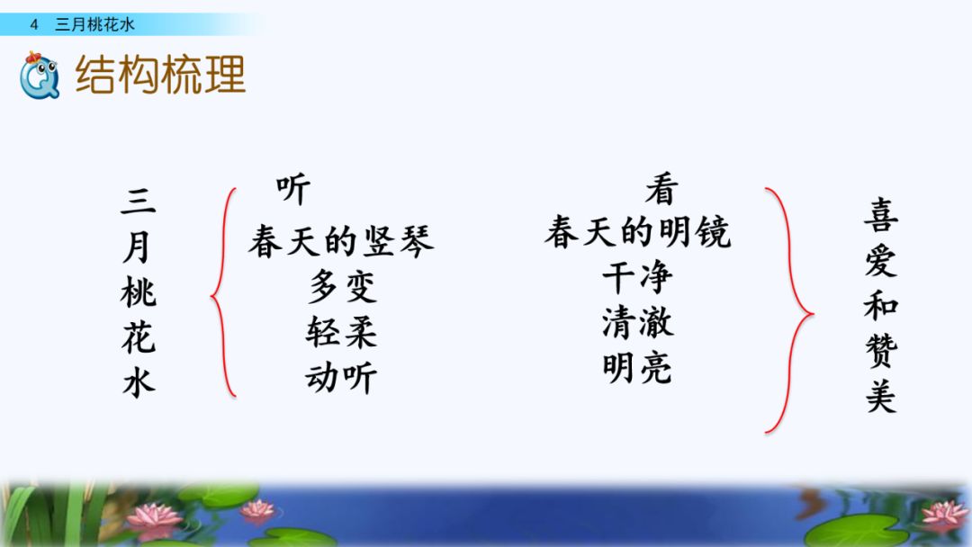 4.为什么说三月桃花水是“春天的竖琴”“春天的明镜”?