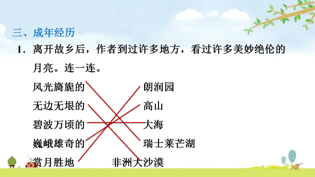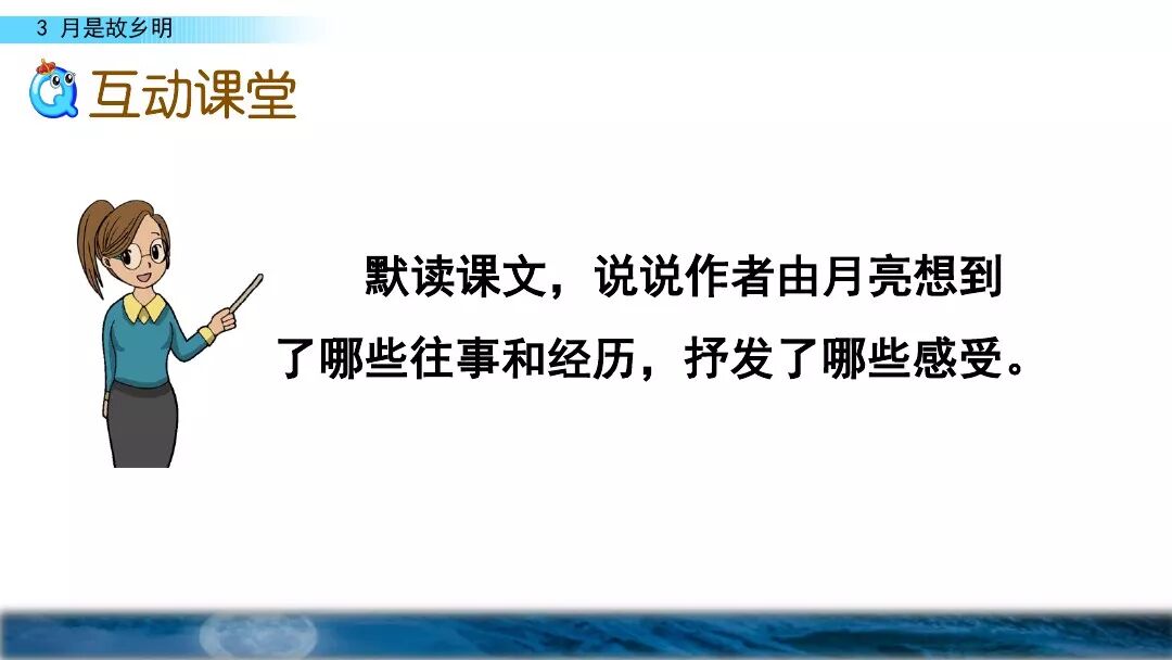 2.默读课文,了解作者由月亮想到的往事和经历,以及产生的内心感受。