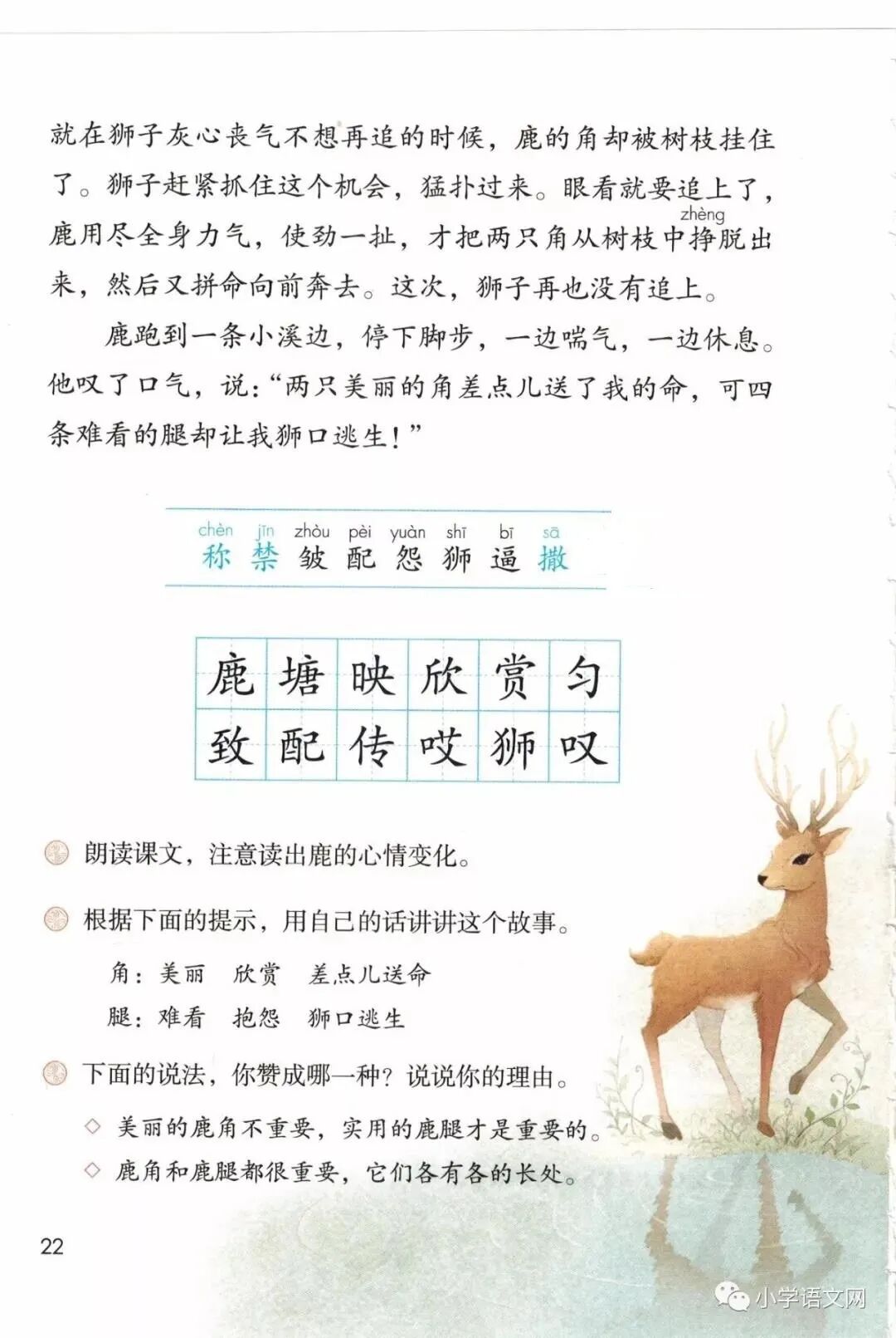 3.小鹿终于明白了自己喜欢的美丽的角,也有短处,差点让自己送了命,自己讨厌的难看的腿,也有自己的长处,关键时刻救了自己一命。