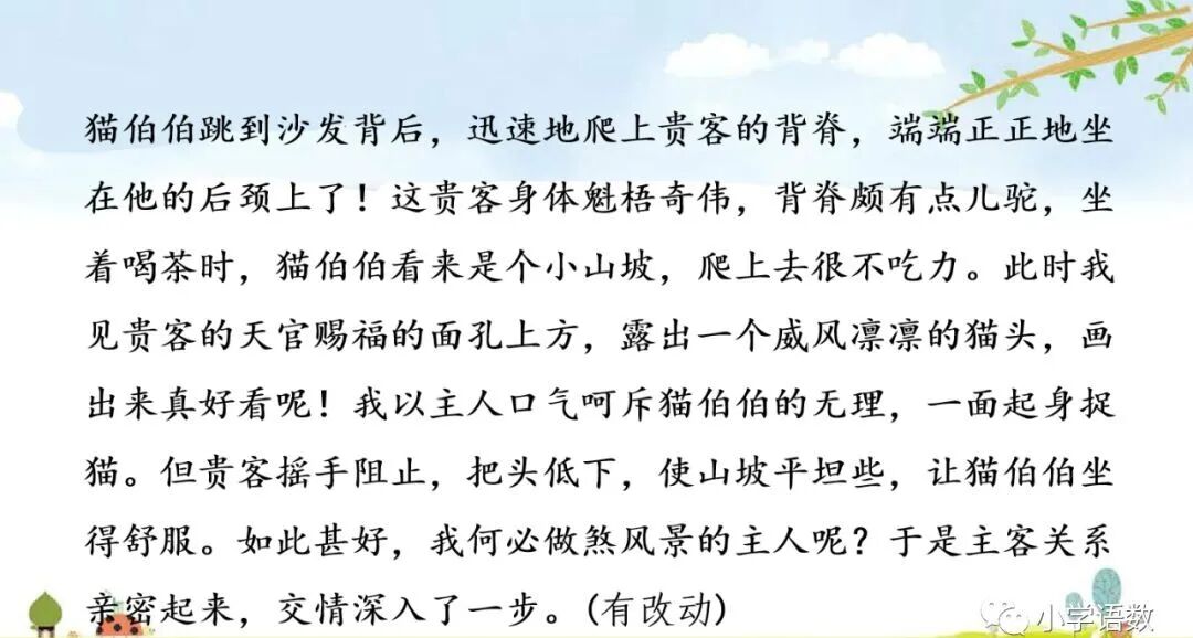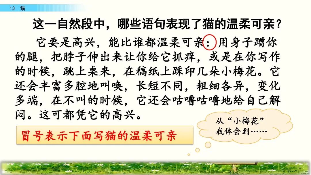 这篇精读课文细致、生动地描述了猫的古怪性格和它满月时的淘气可爱,全文字里行间流露出作者对猫的喜爱之情。