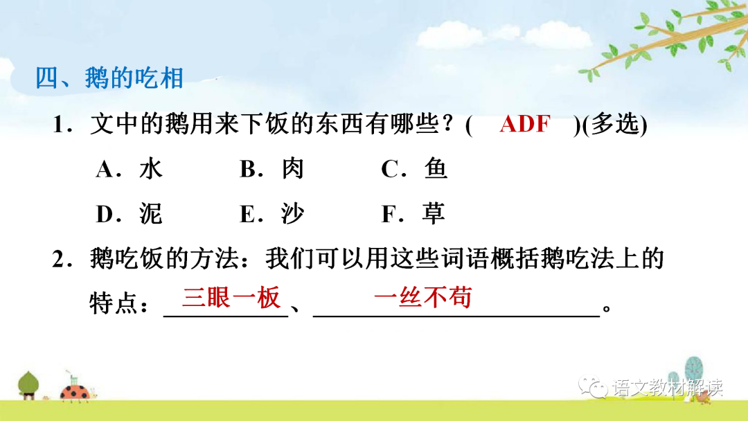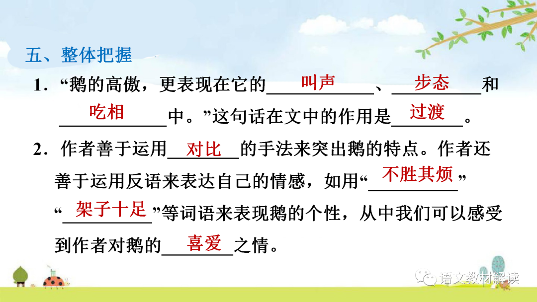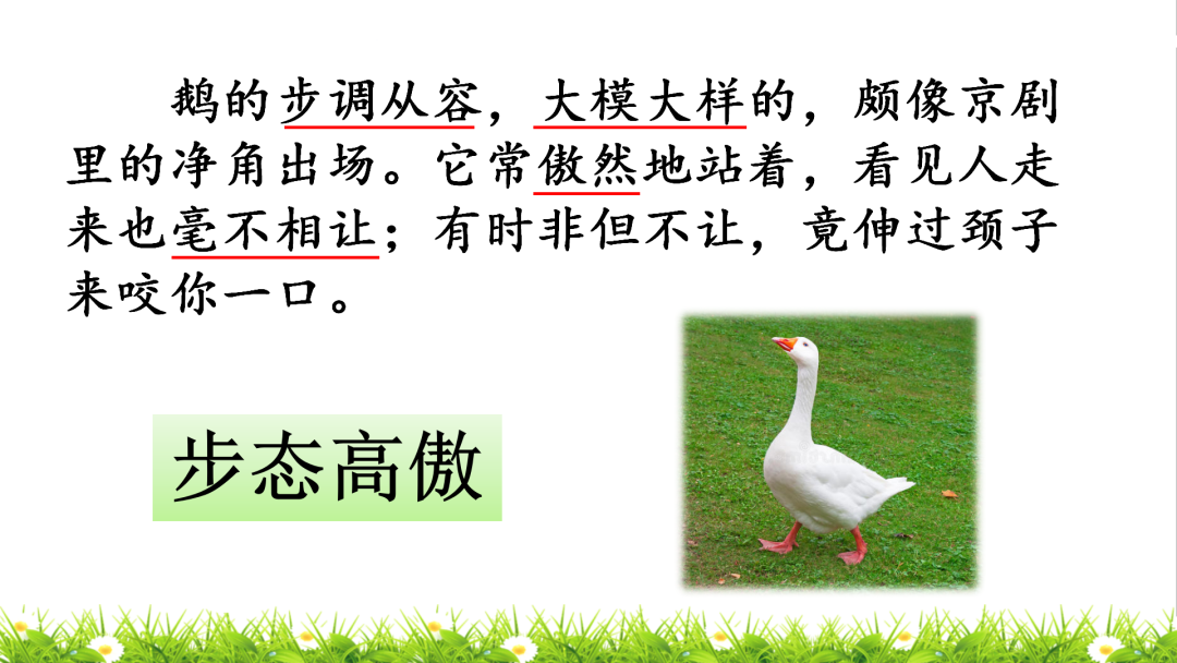 3.白鹅是一种( )的动物,这个选段从( )上反映了它的这一特点。(2分)