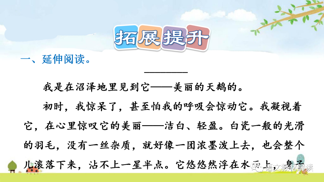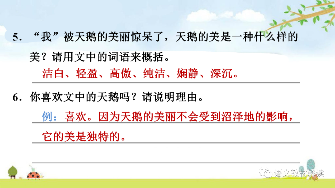 5.用“位”字,很自然地流露出作者对白鹅的亲昵和爱意。