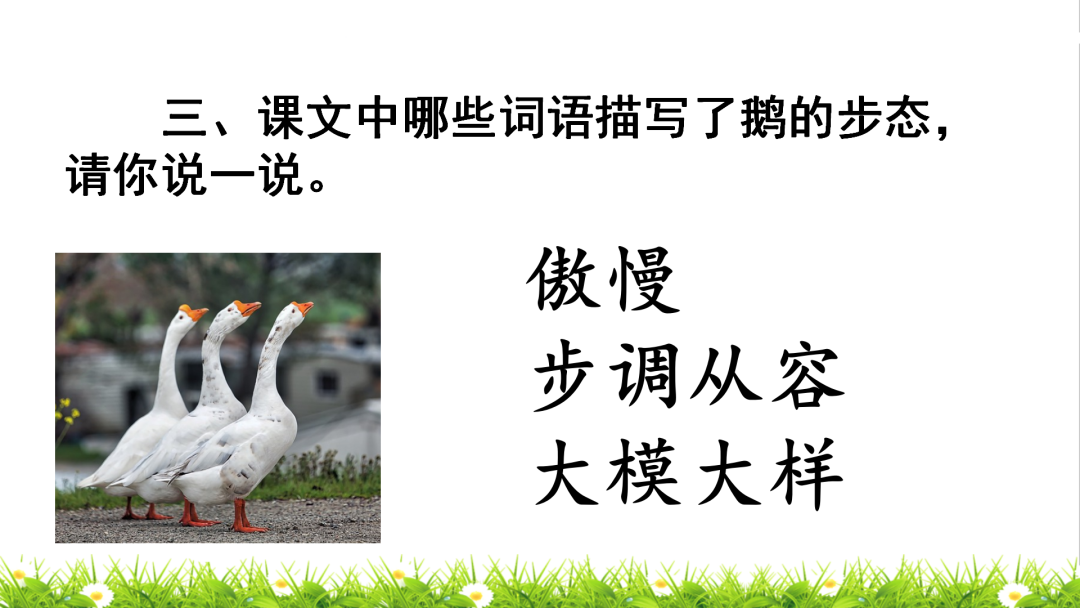 2.大白鹅吃食时,是先( )再( )然后( )。(3分)