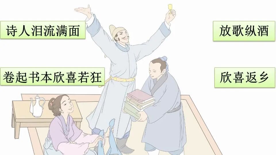 却看妻子愁何在,漫卷诗书喜欲狂。