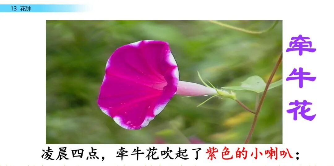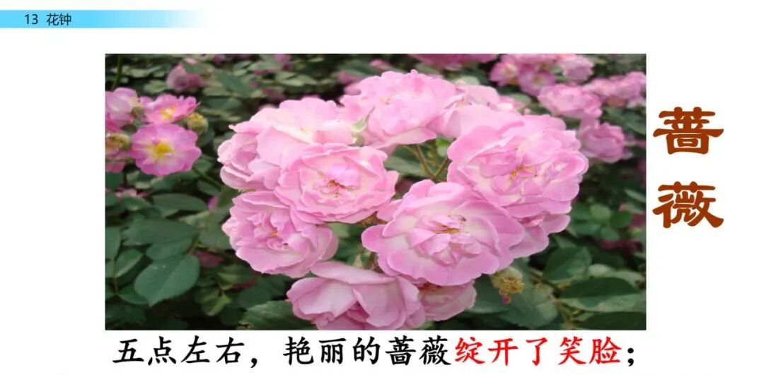 (2)在熟读课文的基础上练习背诵。抓住每种花开放的时间、颜色或形状等特点进行背诵。