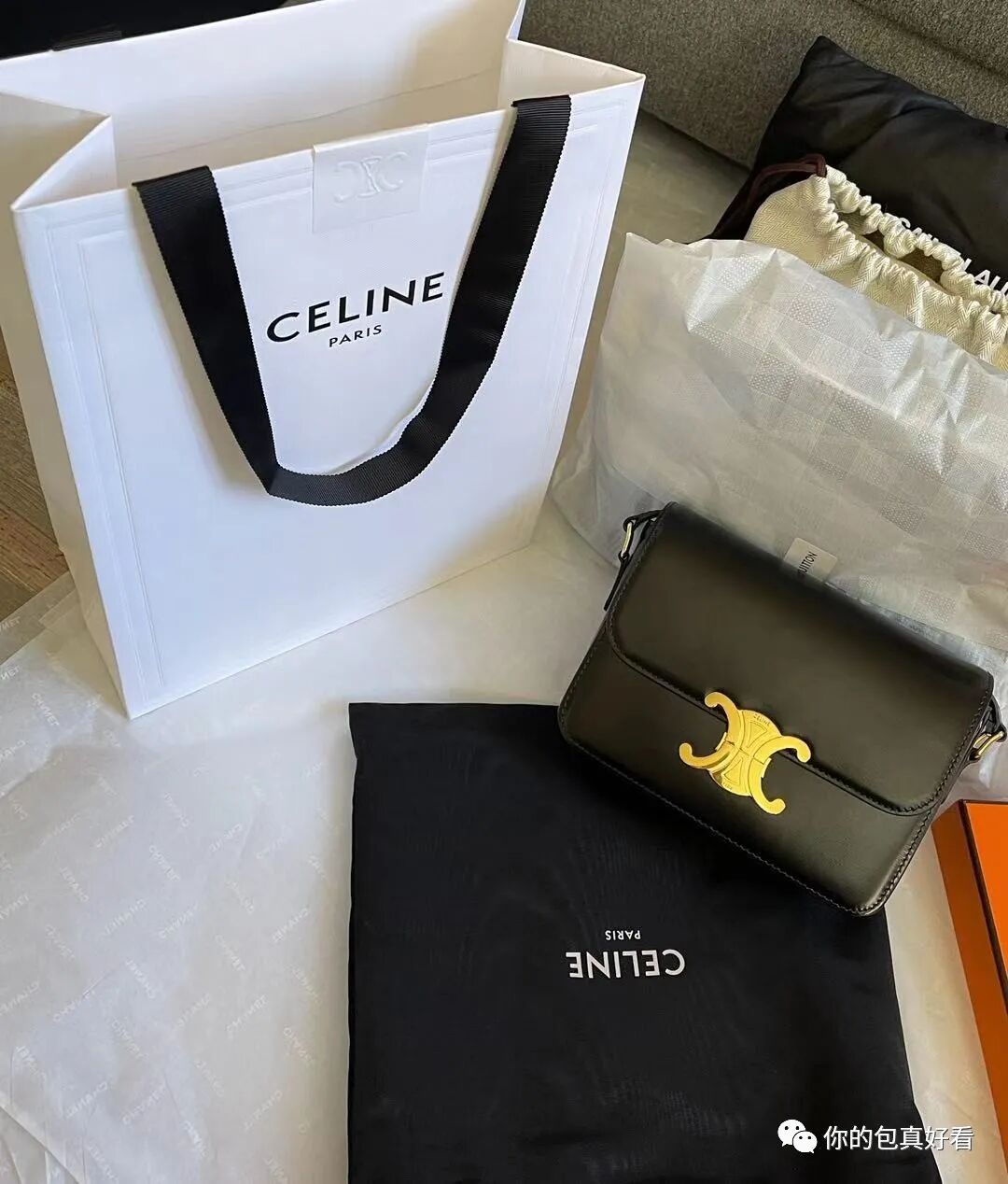 @Tamama大人_珊:越看越喜欢的Celine凯旋门黑金,一直就差个埋单的冲动。就在某一个心情倍儿失落的晚上终于下了决心,付完款立马觉得生活又充满了期待!