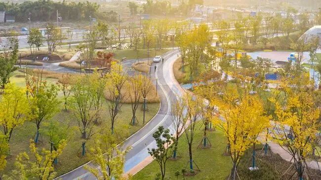 主园路以栾树、紫薇为基调,串联六段特色植物景观,不同的季节、不同的路段,将会呈现不同的美。