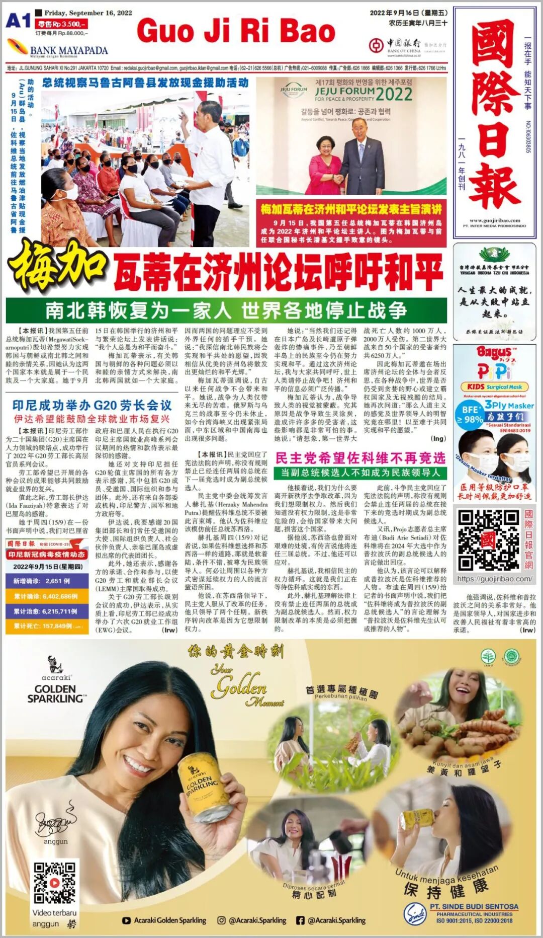 【本报讯】佐科维总统于9月15日视察马鲁古省阿鲁县(Alur)。他通过总统府秘书处 YT频道声称,截至当天,政府已在461个市县区向817万9000人,分发了转移燃油津贴的直接现金援助,这次的直接现金援助分发过程可以说非常快。