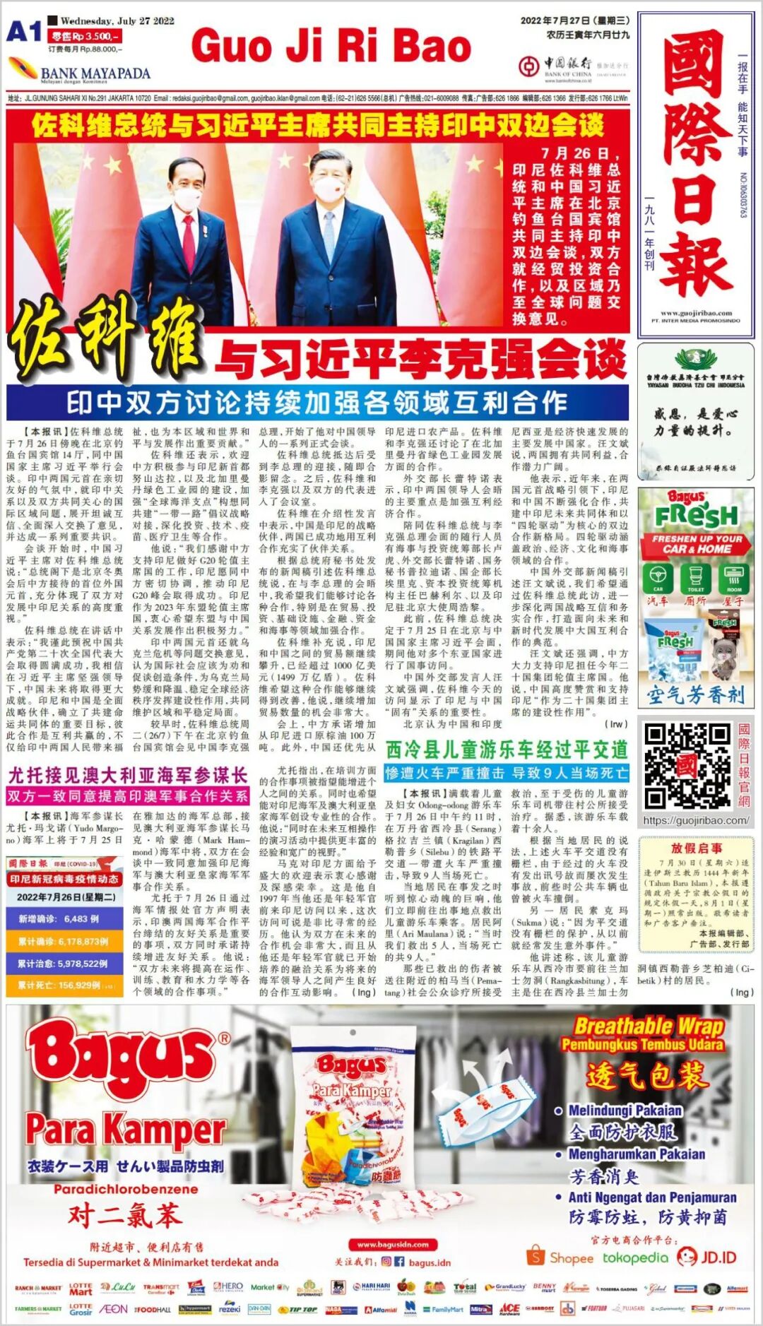 此前,佐科维总统决定于7月25日在北京与中国国家主席习近平会面,期间他对多个东亚国家进行了国事访问。