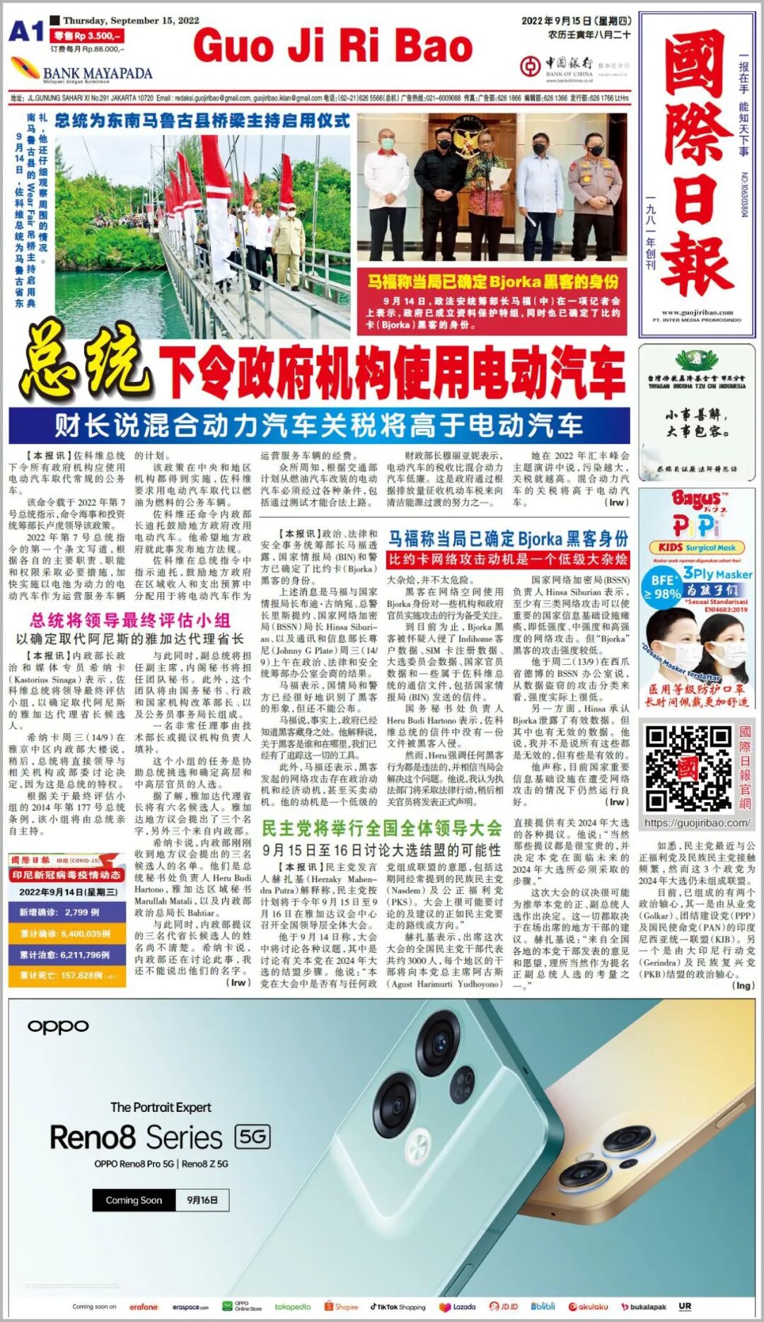 【本报讯】佐科维总统下令所有政府机构应使用电动汽车取代常规的公务车。该命令载于2022年第7号总统指示,命令海事和投资统筹部长卢虎领导该政策。