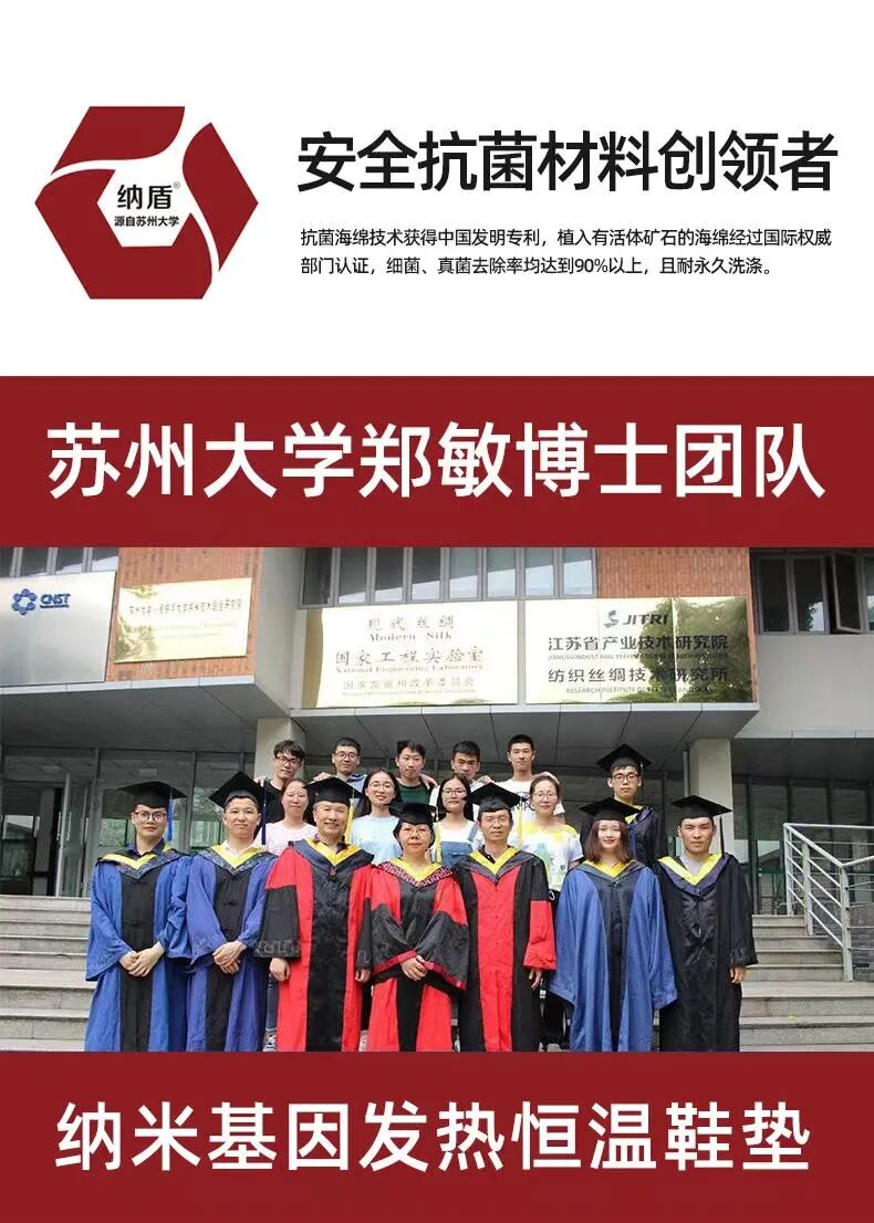 今天给大家推荐的是苏州大学郑敏博士团队耗时5年研制出的核心专利技术——纳米基因发热恒温抗菌鞋垫。