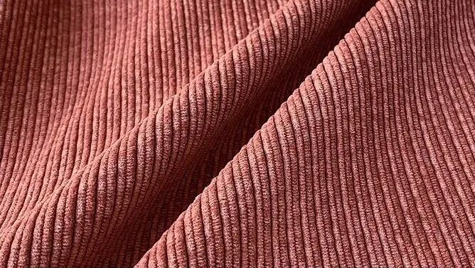 灯芯绒的特点,就是表面有凹凸不平的条纹肌理,也叫坑条。这些立体的坑条,在不同光线的影响下,会产生视觉的变化。