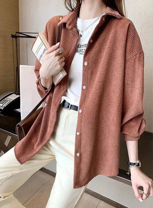 今天就给大家安利的灯芯绒保暖衬衫。它和别的衬衫蕞大的不同之处有三点:更保暖、更有高级感、更显瘦减龄!