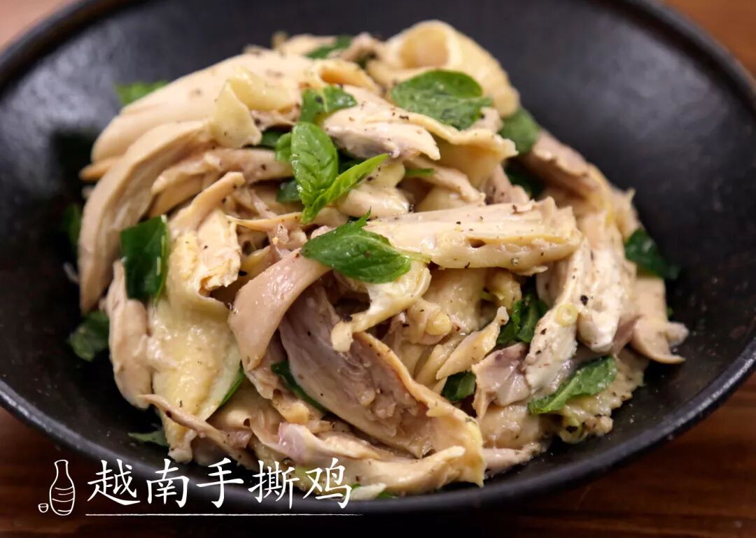 我国的手撕鸡不管什么风味,大多是凉菜,而越南正好相反,一定要趁热撕。只有这样,罗勒、薄荷、柠檬草的清香气味才能被彻底激发,肉香味浓,一吃难忘。