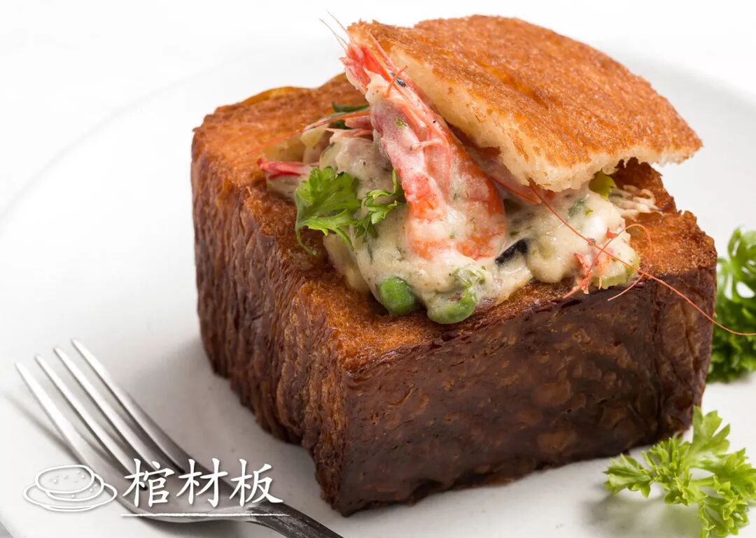 今天分享一款流行于台南地区的特色小吃,名字听着吓人,叫作“棺材板”,取的却是“升官发财”的好彩头,其实就是将厚吐司炸到酥脆,掏空做成壳,再填入超丰盛的配菜,各凭喜好,做法中西合璧,特别好学哦!
