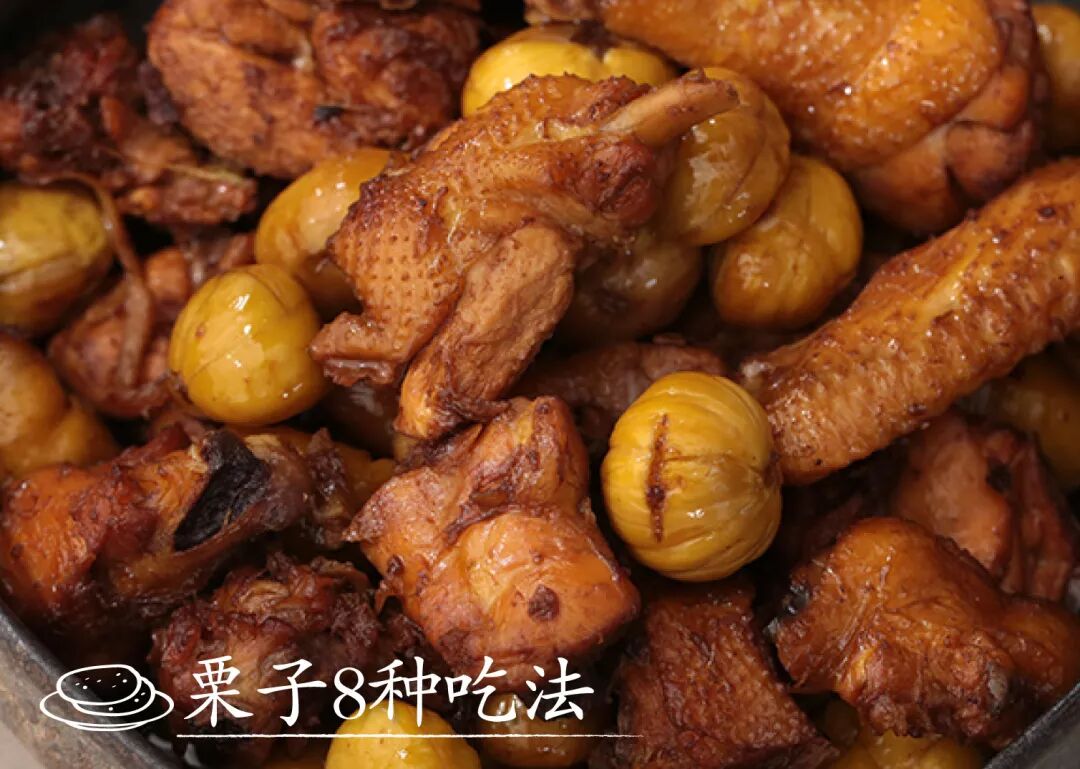 栗子蒸炒炖煮都能胜任,比如甜蜜细腻的糖渍栗子、蒙布朗栗子蛋糕,鲜美浓郁的板栗烧鸡,家常滋补的板栗龙骨汤。