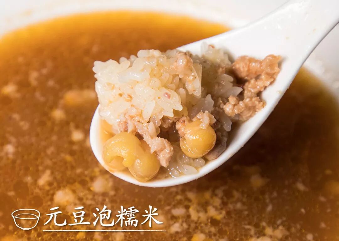 糯米吃法形式多样,在湖北荆州的沙市,当地人早餐必不可少的一道小吃:元豆泡糯米,将蒸熟的糯米浸入油润香浓的大骨汤中,搭配豆香浓郁的豌豆,和各式码子,在秋冬季节,一口下肚,暖胃又暖心!