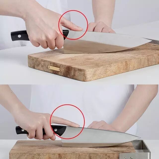 告诉你一个你大概不知道的事:越锋利的刀其实越安全!!因为用了锋利的刀具,你就不需要很用力地去切割食材,就不会因为打滑而割到手。