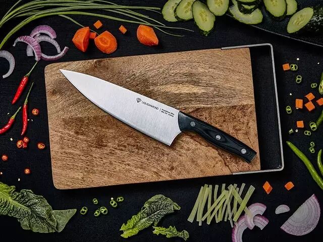 今天,我们推荐一把很厉害的主厨刀(Chef's knife)!它来自Liquidiamond——一家来自美国加州的工艺创新公司。虽然这把刀是美国刀,但是由于出色的材质和性能,也受到了很多中国美食达人的喜爱,用来它操作中华料理也是得心应手!