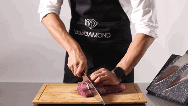 简单来说,这是一种全面超越传统合金和陶瓷的新一代刀具材料。用它来做刀,可以真正做到:切洋葱不刺激,切水果不流汁,切牛筋一切到底!
