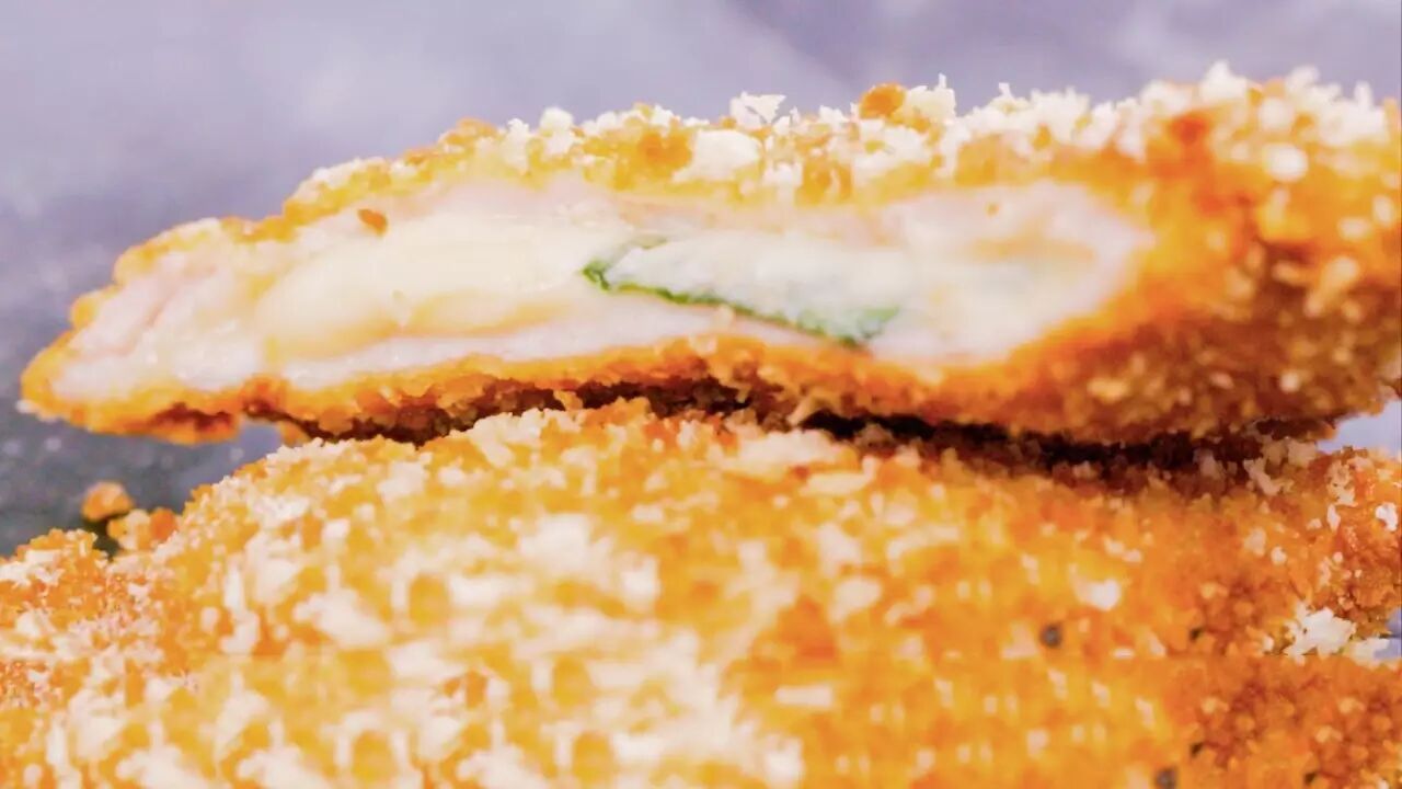 ►在炸猪排中加一片芝士,浆汁浓郁,热量充足,口感风味瞬间大不一样!
