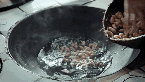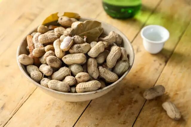 花生摘下来后,洗净外壳上的泥巴,然后倒进热水锅里,加盐、八角、香叶和花椒,放一点陈皮,养胃功效更好。