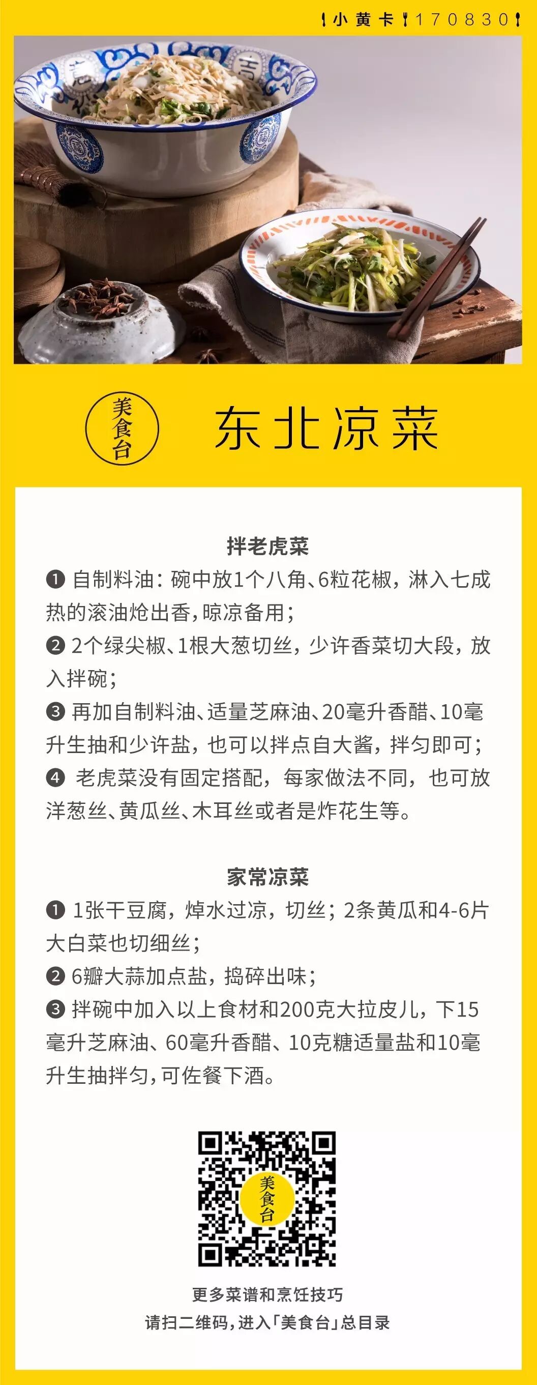 东北人性格粗放豪爽,从做凉拌菜就可以看得出来,比如著名的老虎菜,就是直接用青椒、大葱与香菜三种辛辣食材,用家常调料拌一拌,刺激又开胃;而另一种家常凉菜一做就是一大盆,除了东北特有的大拉皮儿,还可随喜好放入干豆腐丝、白菜丝、黄瓜丝等等,各种常用酱料一拌,用来佐餐下酒都特别棒!【你还喜欢哪些风格豪爽的东北菜?欢迎分享】