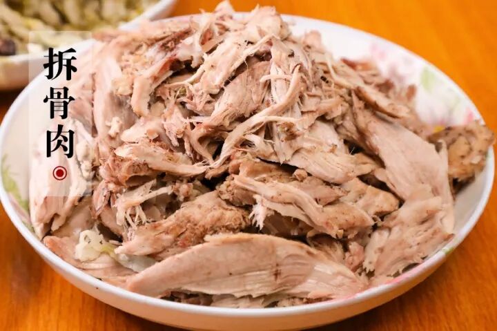 拆骨肉也是四道主菜中必不可少的一道。直接将熬老汤棒子骨的骨边肉拆下来,同样也是蘸蒜酱吃。
