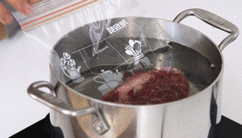将牛排、鸡肉或者鱼肉调味后置于烹调专用的塑封袋中,挤去多余的空气并封口,放入用a˚ kitchen 1档加热的热水中,2~6小时就能完成传说中的低温烹饪,这样做出来的肉,口感非常细嫩。